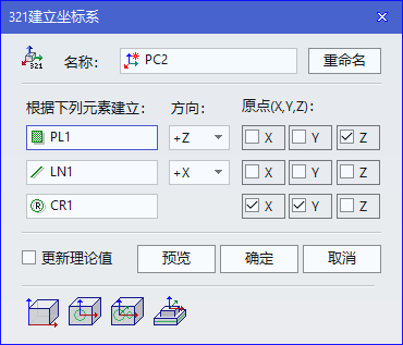 ■更新理论值:在坐标系的创建过程中,每个创建窗口都有一个更新理论值复选框,如下图所示。当勾选此选项时,原来坐