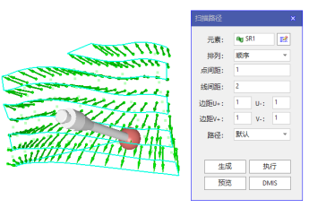 ▶测量点的获取:手动测量时通过操作人员手动移动机器来获得测量数据,获得的测量数据信息将显示在测量窗口中。 需要注意的是生成曲面最少需要八个测量点;也可以使用右键菜单中“产生测量路径”,如图3-57,或“产生扫描路径”,如图3-58;