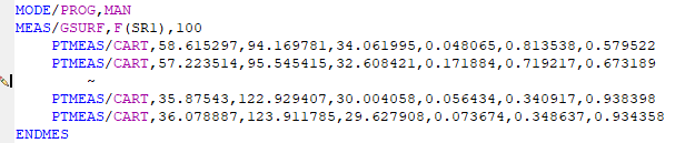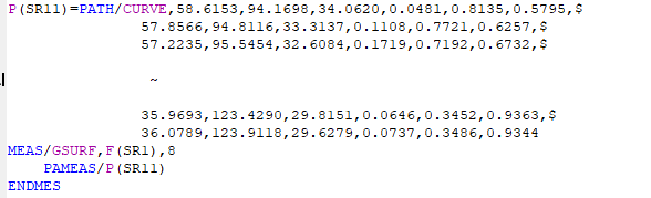 ▶生成DMIS语句:按照理论曲面生成的DMIS测量语句和扫描语句如图3-59:
