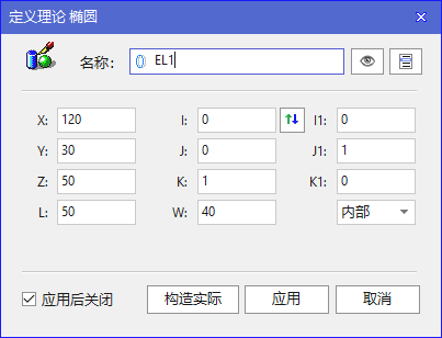 ■椭圆定义:在椭圆根节点上右击,选择菜单项“定义理论元素”,弹出如图3-33的球定义对话框,其中:
