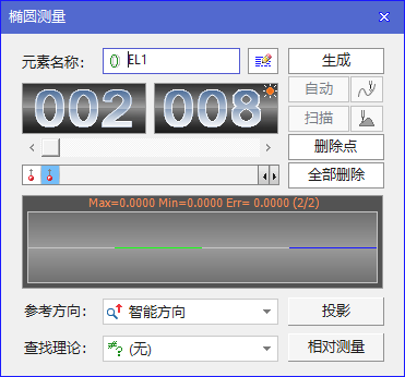 ☆手动测量时通过操作人员手动操作机器来获得测量数据,获得的测量数据信息将显示在椭圆测量窗口中。