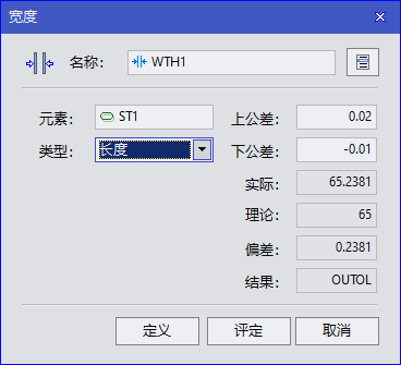 宽度(长度)公差指的是具有宽度或长度属性的几何元素的理论值与实际值之差。在 VISUAL DIMAS中目前版本仅限于键槽元素。